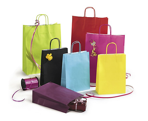 - Bolsas kraft y charol personalizables disponibles en varios colores.